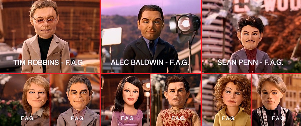 Là encore, on ne manquera pas de pointer chez eux une évidente haine des acteurs, tous si sérieux et égocentriques qu’ils en deviennent forcément irritants. Mais comment ne pas voir aussi dans cette usage des marionnettes un raccourci dingue (mais très juste) de la condition d’acteur à Hollywood, sorte de marionnette tenue par les fils de studios biberonnés à la répétition et la mécanisation des attitudes les plus basiques ? Dans une scène-clé du film, on verra notre protagoniste (Gary), alors en pleine déchéance personnelle, en train de vomir en boucle dans une ruelle à l’arrière d’un bar miteux : rien d’extraordinaire en soi, sauf que la persistance à en faire des caisses dans les geysers de gerbe laisse vite de côté l’hilarité au profit d’une chose moins drôle, à savoir l’incapacité pour l’acteur hollywoodien de quitter son image et/ou d’éviter de forcer davantage le trait dans le tournage d’une scène précise. En cela, Parker & Stone ne font pas mine de jouer l’outrance comme des sales gosses en train de se livrer à un concours de flatulences au beau milieu d’une messe. Bien au contraire : ils se lovent dans cette outrance pour en extraire une certaine vérité relative au milieu qu’ils prennent plaisir à atomiser, ce qui leur permet ainsi de contourner le cynisme ou la facilité. D’autres scènes du film vont totalement dans ce sens, d’un brillant montage parallèle où les héros règlent leurs problèmes intimes tout en explosant des avions ennemis en plein vol jusqu’à une chanson culte évoquant (preuves à l’appui !) la nécessité d’un montage pour faire passer les idées les plus absurdes. Et dans sa logique d’assumer jusqu’au bout son rejet intégral de la bien-pensance, le film va même jusqu’à conférer à la fellation ou à la cigarette une utilité des plus universelles (mieux vaut ne pas révéler en quoi). Subversif jusqu’au bout, on vous dit.