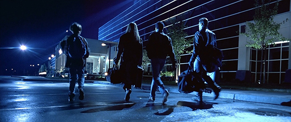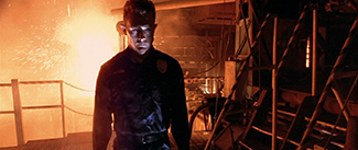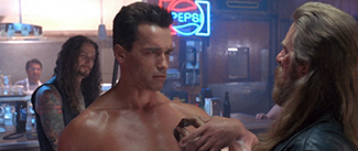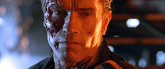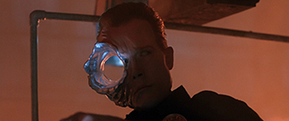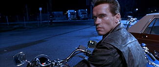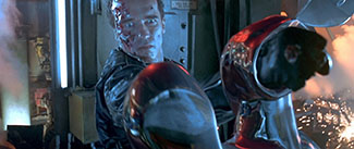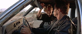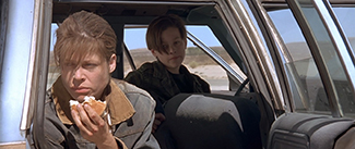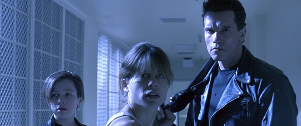 Si la logique humaniste de T2 ne souffre jamais du moindre excès de mièvrerie ou de niaiserie (ces deux tonalités ont été exterminées du récit), on peut reconnaître que le film, avant tout plus grand public que son prédécesseur, joue souvent la carte de l’humour, voire de la frime pure et simple, comme en témoignent l’affiche du film, la concrétisation jouissive de cette affiche dans la scène d’ouverture (le T-800 révèle toute sa puissance iconique après avoir volé une moto et des vêtements) et surtout la meilleure réplique de l’Histoire du cinéma placée à un moment décisif (« Hasta la vista, baby ! »). Mais ces éléments finalement assez naïfs, qui seront pourtant pour beaucoup dans la postérité du film et dans son impact auprès de plusieurs générations de cinéphiles, n’altèrent en rien la portée humaniste du propos. Elles contribuent au contraire à l’équilibrer, tout comme le regard naïf de Cameron transparaît ici à travers le personnage de John Connor. En cela, le cinéaste mange du même pain qu’un George Miller sur Happy Feet ou qu’un Hayao Miyazaki sur toute sa filmographie : tout est vu à travers le regard d’un enfant, ici fasciné autant qu’effrayé par la technologie démentielle qui est mise à sa disposition et qu’il prend soin d’exploiter afin d’éclaircir les horizons autant que faire se peut.