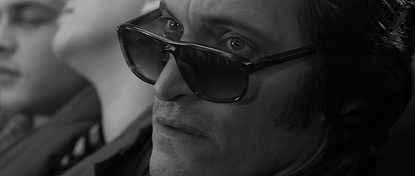 Ces références cinéphiles sont un peu comme des poussières d’étoiles qui ne cessent d’illuminer la noirceur intrinsèque de Tetro. Ce que montre Coppola durant les deux génériques du film (au début et à la fin) se veut une illustration directe de ce parti pris : un éclatement de scintillements épars, à travers lesquels on reconnait certes une surexposition de la lumière de phares de voiture sur une route (presque un petit effet d’annonce pour une scène cruciale du récit), mais qui confirme en même temps la dimension théâtrale du récit (on peut presque y voir un écran de fumée ou un rideau d’illusionniste). Tant d’éclairages publics dans la nuit de Buenos Aires sont des signes qui commencent par guider Bennie dans la plus symbolique des obscurités (ouverture de l’intrigue) et qui finissent par l’égarer au beau milieu d’une avenue bondée avant qu’une belle réconciliation cathartique avec Tetro ne lui offre un nouvel aiguillage existentiel (clôture de l’intrigue). Ces lumières isolent aussi des détails visuels qui, capturés en douceur par la prédominance du plan fixe (un choix revendiqué par Coppola), confèrent à la nuit argentine une tonalité irréelle, quasi onirique, appuyant la suspension du temps : des cafés encore éclairés à une heure tardive, une longue guirlande flottant au vent sur une avenue déserte, etc… Ces lumières, de façon plus générale, révèlent un Coppola désireux de percer le voile d’illusion de la réalité, de lézarder avec malice les fausses promesses d’un noir et blanc bien trop aiguisé pour ne pas s’avérer plus retors que prévu. Le regard pénétrant de Vincent Gallo, qui compose en très grande majorité l’affiche du film, ne fait qu’appuyer cette intention : dans Tetro, si la luminosité se reflète dans le regard d’un personnage, c’est qu’elle réactive alors les blessures de son passé, les hantises issues de son intériorité. En témoignent ces flashbacks en couleur, donnant vie à des effets de rime et de symétrie en lien avec l’instant présent : une collision sur la route ravive le souvenir d’un terrible accident de voiture filmé comme un fracas d’éclairages (ce que Gaspar Noé appliquera la même année sur une scène-clé d’Enter The Void), un scintillement jailli d’un vaste glacier de Patagonie réactive l’obstination de Tetro à fuir une consécration pourtant imminente, et cette présence envahissante du père, tant dans l’attitude théâtrale d’untel que dans le bidonnage de souvenirs réels au cours d’une thérapie de groupe, rend l’invisible plus visible que jamais.