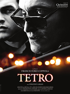Synopsis : Tetro est un homme sans passé. Il y a dix ans, il a rompu tout lien avec sa famille pour s’exiler en Argentine. À l’aube de ses 18 ans, Bennie, son frère cadet, part le retrouver à Buenos Aires. Entre les deux frères, l’ombre d’un père despotique, illustre chef d’orchestre, continue de planer et de les opposer. Mais Bennie veut comprendre. À tout prix. Quitte à rouvrir certaines blessures et à faire remonter à la surface des secrets de famille jusqu’ici bien enfouis…