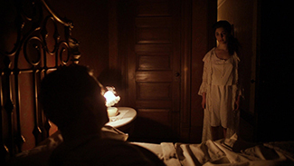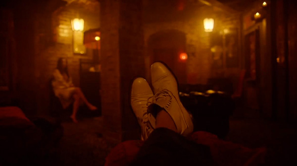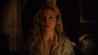 C’est bien à cette tradition de l’entre-soi mondain que nous renvoie Soderbergh, usant de chandelles, de feux de cheminée, de lampes à gaz et autres éclairages naturels. Dans le photogramme suivant, on retrouve également le bokeh qui estompe et ombrage le décor, laissant percevoir la scène par le prisme du souvenir. Ainsi, on perçoit ce flash-back comme notre psyché restituerait une expérience maintes fois remémorée.