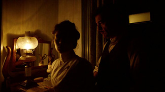 L’utilisation du clair-obscur par Soderbergh n’est pas réservée à ces cas isolés, au contraire il l’a souvent utilisé pour filmer l’intimité. Là encore, les caméras de la marque Red lui permettent d’opérer avec simplicité et donc d’y recourir plus souvent : elle rend en effet relativement aisées les prises de vue en faible luminosité. Pour The Knick, la caméra Epic Dragon (la série la plus récente des Red) lui permet donc d’épouser des éclairages à tendance réaliste et de repousser les lumières artificielles. Grâce à elle, il pourra se limiter à la lumière d’une lampe à gaz visible à l’écran et correspondant à la lumière perçue par ses personnages et ce, sans ajouter de projecteur supplémentaire. On reconnaît ici la veine de Kubrick dont il admire tout particulièrement Barry Lyndon, la différence étant qu’il peut travailler avec le même type de luminosité sans dépenser une somme astronomique.