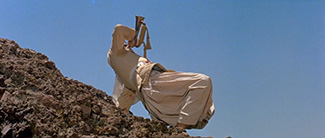 Dès sa géniale scène d’ouverture en trompe-l’œil, le cinéaste frappe déjà très fort : voilà un décor réel où une équipe d’Hollywood tourne le remake du Gunga Din de George Stevens, et où un acteur indien, censé incarner un soldat mortellement blessé qui alerte ses alliés, fout toute la scène en l’air en surjouant la souffrance comme un malade, avec une trompette qui devient presque un accessoire de cirque à force de cracher des sons aussi ridicules. Tout est déjà là : le burlesque le plus désopilant qui s’invite au cœur même de la fiction la plus sérieuse, la mise en abyme de l’acteur comique (celui qui ne sait pas mesurer son degré de folie) comme parasite du système de production, et surtout le goût d’Edwards pour les piques en cascade vis-à-vis du système qui l’a porté au triomphe. La suite de l’ouverture est au diapason : un producteur qui se tape une bimbo dans sa caravane juste après avoir engueulé son équipe, un réalisateur qui laisse une pause-déjeuner plus longue à ses acteurs qu’à son équipe technique (à croire que les seconds travaillent moins !), et comble de l’absurde, un patron de studio qui confond une liste noire avec la liste de ses invités ! Le générique n’est même pas encore lancé qu’on est déjà étourdi par la violence de la satire. Sans parler de ce héros au nom imprononçable (Hrundi V. Bakshi), qui, au vu d’une maladresse over the top (il fait exploser un décor ultra coûteux), en arriverait presque à faire passer Gaston Lagaffe pour un parangon de prudence.