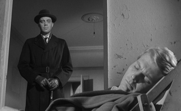Très vite, elle se montre méfiante à l’égard du valet dont elle juge la présence agaçante et l’empressement un rien malsain, elle qui semble tant peiner à créer une intimité avec son promis, elle dont les gestes sont aussi froids que les ceux qu’ils appellent en retour de la part de Tony. Signe du pouvoir de persuasion croissant de Barrett sur Tony, la sœur du premier est engagée par le second à son service. Mais Vera (Sarah Miles) s’avèrera bien assez tôt être en réalité la maîtresse de Barrett. Elle séduit pourtant Tony. Par attirance réelle ou pour servir les desseins de Barrett, dont on ne connaîtra jamais la nature exacte ? La capacité du film à nous fasciner autant procède, entre autres, de cette ambiguïté. Mais c’est surtout la mise en scène qui porte cette histoire de rivalité de classes, de guerre des statuts, vers des terres d’une ambiguïté extrême. On ne s’étonne guère de trouver à la photographie Douglas Slocombe, qui sortait alors du tournage de Freud, Passions Secrètes de John Huston (1963) et dont on retrouve le travail du noir et blanc comme un affrontement permanent entre deux forces, qui ici sont autant sociales qu’intérieures aux personnages, et particulièrement à celui de Tony, puisque c’est bien sa déchéance que le film raconte (comme nous l’annonce presque d’emblée ce plan où, endormi, il est dominé dans le cadre par le majordome qui vient de s’introduire dans la maison).