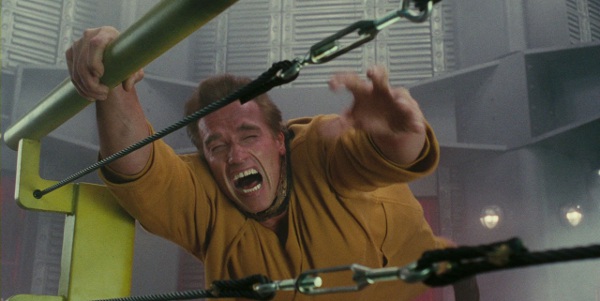 Mais rien ne restera plus jouissif à envisager que le parallèle entre la carrière politique d’Arnold Schwarzenegger et son personnage dans Total Recall : il faut se souvenir que le titre du film avait été utilisé en 2003 pour baptiser sa campagne politique, et cela en devient même assez gonflé lorsque l’on voit que son personnage, peu à peu envisagé comme étant le sauveur des nantis et le nouveau chef de la rébellion populaire, se révèle être un infâme agent double employé par les puissants pour anéantir la rébellion. Quaid/Schwarzie est-il un vrai homme du peuple ou une taupe au service des entreprises ? Sa mémoire est-elle en train d’opérer un retour vers la réalité ou de générer un fantasme totalement artificiel ? La fin est-elle un happy end ou un faux espoir ? Total Recall est-il un spectacle ludique du début à la fin ou un énorme trompe-l’œil conçu pour nous perdre ? Les questions sont simples, les réponses sont introuvables, en tout cas assez pour que l’on jubile à ne plus savoir quoi penser au fil des revisionnages, au risque de devenir fou. Ne pas trop se réjouir pour autant : on a un remake qui débarque en ce moment dans les multiplexes avec pour seul but de faire un carton en salles. Dans ces moments-là, on a envie de faire comme Douglas Quaid : continuer à vivre le peu de temps qu’il nous reste avec l’objet de nos fantasmes (ce chef-d’œuvre, le film le plus barré de Paul Verhoeven) avant de se faire lobotomiser la cervelle par ce qui ne semble être qu’un énième blockbuster sans âme.