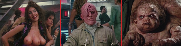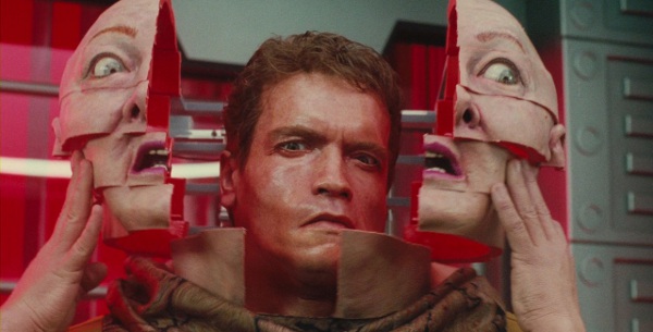 Ce qui induit un trouble sur la réalité de ce qui arrive prend alors racine dans le moindre micro-détail dissimulé dans chaque cadre, et sur ce point, le plaisir monstrueux généré par le film ne peut qu’inviter le spectateur à des visionnages répétés, lesquels peuvent s’avérer bien utiles. Ainsi donc, la présentation du souvenir proposé par Rekall détaille déjà le déroulement de la fuite mouvementée qui va suivre, les images que l’on présente à Quaid sont des copies exactes des décors martiens que l’on découvrira plus tard, et même la toute première scène du film (celle du rêve sur Mars) donne une image précise de la femme idéale de Quaid telle que Rekall la schématisera ensuite selon ses désirs (brune, athlétique, vicieuse, réservée, avec le même visage que dans le rêve !).