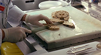 Tout tient d’abord dans une terreur sourde qui prend place dans la quasi-totalité des lieux visités. Un avion dont les passagers dorment la bouche ouverte (ce qui les fait ressembler à des cadavres), un laboratoire scientifique où l’on découpe des morceaux de cervelle avec le bruit saccadé d’un agitateur magnétique en fond, un hôtel dont les couloirs vides – cadrés dans une symétrie maladive à la Shining – génèrent une tension inexpliquée, mais aussi une poignée de séquences tournées en caméra portée, où le grain de l’image et l’instabilité du cadre créent une rupture avec le reste de la narration. Deux d’entre elles sont assez inoubliables. La première, intégrée entre deux plans d’un Shane tourmenté, tient clairement de l’image mentale : on y voit le corps dénudé de June, maculé d’un sang très rouge et très épais, sur fond d’un bourdonnement sonore à la Philippe Grandrieux (lequel explorait déjà dans Sombre les pulsions sadiques d’un homme pour la femme qu’il aimait). La deuxième est un flashback qui s’en tient à un pur jeu de regards, ordonnant une discussion entre Shane et une scientifique rousse dont le regard, aussi malsain que terrifiant, fait penser à celui d’une sorcière. Même quand le concret est à l’image, l’inquiétude se fait aussi bouillante que l’étrangeté sans que Claire Denis n’ait besoin de mouliner de la péripétie choc. C’est que sa caméra est ici comme une sonde, en lien exclusif avec les abysses de l’inconscient. Du moins jusqu’à une scène-pivot qui change littéralement la donne…