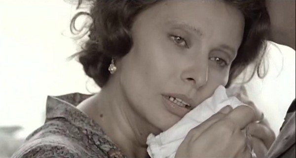 La réalisation n’exprime alors rien d’autre que la possibilité d’une étreinte dont on sait qu’elle arrivera forcément. Aux propos d’Antonietta qui dit « voir venir » Gabriele et le prend pour un homme à femmes, la mise en scène associe cruellement des plans rapprochés sur son visage à lui, attristé de voir la ménagère se bercer ainsi d’illusions mais toujours silencieux. Le premier baiser intervient au terme d’un rituel de pliage de drap qui contraignait les personnages à l’éloignement puis au rapprochement. On attendrait un resserrement du cadre dès que les lèvres se touchent, mais sa largeur est maintenue, expression visuelle terrible d’une absence de passion de la part de Gabriele. Ce qui nous sera confirmé quelques secondes plus tard lorsque le cadre se resserre enfin… mais isole le visage passionné d’Antonietta, l’enfermant dans son illusion. Lorsque le visage de Gabriele apparaît à son tour, seul dans le cadre (quand bien même tous les deux sont dans les bras l’un de l’autre), sa gravité suffit à dire l’impossibilité d’un amour. « Les hommes comme moi peuvent très bien faire l’amour à une femme » dira-t-il plus tard à sa voisine, « Mais ça ne change rien pour autant ». Tant pis, le besoin de tendresse est trop pressant pour la quadragénaire qui réalise qu’elle n’en n’a pas eue depuis son mariage, son mari n’étant qu’un dominateur insensible même dans le lit conjugal (quand celui-ci reviendra, le soir, du défilé, il demandera d’ailleurs à sa femme de venir rapidement au lit, pour concevoir un enfant en l’honneur de ce jour d’apogée du fascisme : « Le septième, on l’appelle Adolfo »). Il y aura donc bien une scène d’amour, d’une très belle pudeur, où les personnages seront là encore isolés par les cadrages et séparés par le montage. Et lorsqu’ils sont tous les deux dans le cadre, Gabriele a soit le regard vide soit les yeux fermés, établissant là encore une distance avec Antonietta.