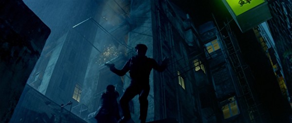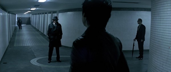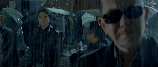 Toutes ces références sont inscrites au cœur même de Vengeance : la cuisine a ici une fonction déterminante dans les enjeux humains du récit (à un moment-clé, Costello refusera de manger la nourriture servie par ceux qui ont exécuté sa famille), le squelette narratif d’Exilé est décalqué dans son intégralité (trois amis tueurs, là encore pilotés par un Anthony Wong super classe, sont contraints de se retourner contre leur chef, à nouveau incarné par Simon Yam), et la puissance picturale de PTU, là encore aidée par un rock atmosphérique du même acabit, se retrouve ici multipliée par dix dans des instants – surtout nocturnes – où le style formel de Johnnie To atteint des sommets de créativité (et où, il faut le souligner, les personnages vivent et meurent au lieu de n’être que des fonctions). De ce fait, le cinéaste reprend ici fièrement son dada : profiter d’un genre et de son énergie initiale pour donner vie à des audaces formelles jamais vues, et ce toujours en lien avec la trajectoire – réelle et symbolique – des figures qu’il filme. Parfois, cela se traduit par de très subtils jeux de scénographie qui suffisent amplement à décoder le vrai sens de l’enjeu en question : citons ce contrat d’assassinat de la femme infidèle du bad guy, découpé dans les espaces circulaires et feutrés d’un hôtel de luxe à grands renforts de gestes et de silences, ou encore la rencontre géométriquement splendide entre Costello et ses trois futurs associés dans un passage souterrain, traçant une trinité de lignes qui se rejoignent dans un cercle (le fameux « cercle rouge » ?) où se fige l’épicentre du récit. Mais c’est bel et bien lorsque Johnnie To choisit de faire parler la poudre, ou plutôt de jouer au maximum sur l’attente que la précède, que le film s’embrase de mille feux.