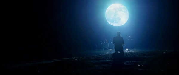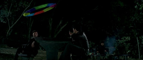 Si l’on revient sur son aptitude à épurer tout ce qui constitue le genre en règle générale (un scénario de vengeance qui perd peu à peu son enjeu, un corps vengeur qui perd peu à peu sa substance), Johnnie To se devait surtout de définir visuellement, pour son protagoniste et pour le genre lui-même, cet horizon salvateur que l’on évoquait plus haut. Là encore, double fulgurance à relever dans Vengeance, ou plus précisément deux glissements inédits qui invitent le cinéaste à tutoyer les deux extrêmes de sa propre démarche – faut-il se diriger vers l’horizon le plus abstrait du genre ou au contraire rester fixé sur ses marques les plus concrètes pour fouiller davantage leur matière ? Polar jusqu’ici réaliste sous sa forme léchée, le film bascule alors de plein fouet dans la métaphysique, versant onirique d’un côté, versant théorique de l’autre. Tout d’abord cette plage idyllique, sorte d’éden protecteur où une jolie jeune femme veille sur de nombreux enfants (les siens ?) et où Costello trouve refuge après sa blessure à mi-parcours. Refuge temporaire ou éternel ? Le film s’achevant sur cet espace de paix, la question reste posée, surtout au vu de ce rire apaisé d’un Costello pratiquement revenu au stade de l’enfance après que sa mémoire ait foutu le camp pour de bon. Mais lieu surnaturel, ça oui, c’est certain : juste avant de laisser Costello repartir pour l’affrontement final, il lui faudra une longue prière s’étirant du jour vers la nuit pour que, le temps d’une scène au-delà de la magie pure, les fantômes de son long parcours de tueur surgissent du rivage troublé par la pleine lune et lui offrent le réconfort tant espéré. Osons proclamer que cette scène, en plus de s’imposer sans hésitation possible comme la plus belle jamais tournée par Johnnie To, porte en elle tout l’espoir du genre : et si c’était dans le fantastique, terreau d’un certain goût du lâcher-prise et des visions sensitives capable de faire revivre tout un héritage sous une forme totalement novatrice, que le polar moderne, travaillé depuis longtemps par une quête de surenchère qui le sabre plus qu’elle ne le cadre, pouvait enfin trouver ce nouvel horizon, signe tangible de sa redéfinition ?