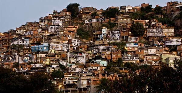A première vue, la démarche pourrait friser aussi bien l’illustration pompeuse que la publicité maline : là où ces photos très provocatrices (il s’agit surtout de grimaces et de joues gonflées) pouvaient suffire à aiguiller le regard de l’humain sur une autre humanité reléguée à l’arrière-plan (celle des « laissés-pour-compte », en résumé), le film ne fait qu’effleurer cela au profit d’un enthousiasme collectif pour cette exposition, et ne se pose jamais en œuvre illustrant la lutte des femmes. Certes, au cours des interviews, les informations pleuvent : femmes qui portent le deuil de plusieurs enfants morts lors d’une bavure policière dans une favela, femmes qui tentent de s’élever contre la violence du quotidien, femmes qui se rebellent contre la violence de leurs époux, femmes qui contestent une menace d’expulsion lancées par les autorités, femmes qui veulent manifester leur existence malgré l’aspect insalubre de leurs logements, femmes qui veulent faire réagir les gens face aux injustices du monde, femmes qui expriment leur courage, etc… Or, sans vouloir paraître démago, on se permettra de considérer que l’héroïsme de ces femmes ne se manifeste ici que sur des problèmes sociaux relatifs à tous les pays du monde, à savoir les femmes battues, le poids des autorités, la place laissée aux jeunes générations, etc…