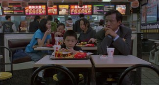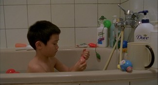 De ce fait, il est possible pour la mélancolie de devenir reine, pour les ficelles du passage de l’ordre au désordre (et vice versa) de n’être jamais tangibles, et pour l’imprévu de jouer autant le rôle de l’intrus que celui de l’invité. Tout ceci, bien sûr, appartient au domaine du ressenti, donc de l’invisible. Mais le film ne laisse pas pour autant le visible hors de l’équation, et compte précisément sur ses personnages pour bâtir des passerelles entre ce qui est vu et ce qui est perçu. D’entrée, posons la question-piège : qui est le véritable héros de Yi Yi ? Aucun et chacun, bien sûr. C’est que cette « vie unique » dont le film cherche à épouser le mouvement ne tient ici que sur quatre personnages d’une même famille (les Jian), tous mis à égalité et superposés le long d’un fascinant pliage narratif. D’abord le jeune Yang-Yang (Jonathan Chang), irrésistible galopin zen de 8 ans dont les passe-temps favoris consistent à jouer le plus possible avec l’eau (plonger dans une piscine, remplir des baudruches, etc…) et à photographier la nuque des individus. Il y a ensuite Ting-Ting (Kelly Lee), sa grande sœur de 13 ans, timide collégienne en socquettes blanches, qui offre bien trop d’attention à une plante verte qui peine à fleurir et qui découvre soudain l’amour dans les bras d’un voisin volage. Il y a également leur père NG (Wu Nien-jen), petit cadre en informatique gagné par la neurasthénie et les regrets amoureux, qui se retrouve commis d’office par sa boîte pour embobiner un businessman nippon. Il y a enfin la matriarche de la famille (Ru-Yun Tang), grand-mère sereine dont la seule présence/absence installe le spectre de la mort dans un coin de l’appartement des Jian – elle ouvre les enjeux principaux par son coma et les referme par son décès – et au chevet de laquelle chacun vient se confier, afin de « bercer son sommeil » d’après les recommandations du médecin.