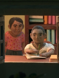 Un tel dispositif a de lourdes implications, qui peuvent être résumées à des enjeux de mise à distance et d’expressivité. Tandis que les filmés de l’époque – esclaves du régime forcément souriants lorsqu’un responsable du parti braque une caméra sur eux en attendant qu’ils fassent bonne figure – n’ont que des « masques » aux rictus inquiétants et que les détails faciaux des figurines sont forcément limités, l’expressivité ne peut être que purement cinématographique. Elle passe par les mouvements de caméra sur ces installations artificielles (particulièrement par ces travellings-états-des-lieux qui mesurent l’étendue des dégâts), par le montage des scènes de figurines avec les archives, qui construit une sorte de récit ultra-personnel, et ramène toujours le politique vers l’intime. Jamais les archives ne désavouent les passages purement fabriqués par Panh. Au contraire, elles permettent à intervalles soigneusement mesurés de rappeler pleinement le caractère avéré de ce qui est raconté de personnel par le cinéaste. Face à la propagande, la vérité est refabriquée avec un peu de terre modelée et de peinture.