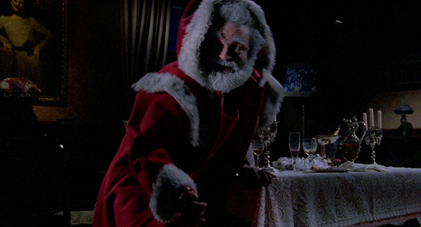 On visualise déjà le trajet parfaitement limpide que va devoir emprunter l’enfant : entre l’instant où sa mère lui balance un avertissement (« Il ne faut pas chercher à voir le Père Noël, sinon il se met en colère et se transforme en ogre ») et un final où une ultime phrase boucle la boucle sur le plus cruel des échos, le jeune héros passe alors moins par un parcours du combattant que par une destruction ironique et impitoyable de ses croyances enfantines. Ce que Manzor avait déjà illustré de façon très claire dans un remarquable plan d’ouverture : le symbole d’une bulle idéalisée dans le monde réel (Paris dans une boule à neige), soudainement réduit en bouillie par la roue d’un camion-poubelle que la caméra cadre alors à gauche d’une affiche publicitaire pour le Minitel (déjà cette idée d’un imaginaire de Noël réduit à l’état de produit). De ce fait, toute la synergie du récit et de la mise en scène ne sera dès lors pensée qu’au travers d’un vaste système d’oppositions, à l’image d’un film qui tente le mélange kamikaze entre deux genres déjà abordés dans l’Hexagone : d’un côté le home invasion sadique façon Mort un dimanche de pluie de Joël Santoni ; de l’autre le conte débordant d’une naïveté embarrassante que n’aurait pas renié l’Arnaud Sélignac de Nemo et de Gawin. Cette hybridité devrait élever l’impact du film, mais c’est hélas elle qui contribue au contraire à l’affaiblir. Il faut dire que, pour ce qui est de jouer sur le thème de l’enfance mise en danger, les spectres de Shining et de La Nuit du Chasseur ne sont ici clairement pas conviés à la soirée. Et dans l’idée d’infiltrer une bonne dose d’esprit punk dans une nuit de Noël où l’on bouffe de la bûche comme des dindes (ou l’inverse), René Manzor n’a pas le mojo de Joe Dante.