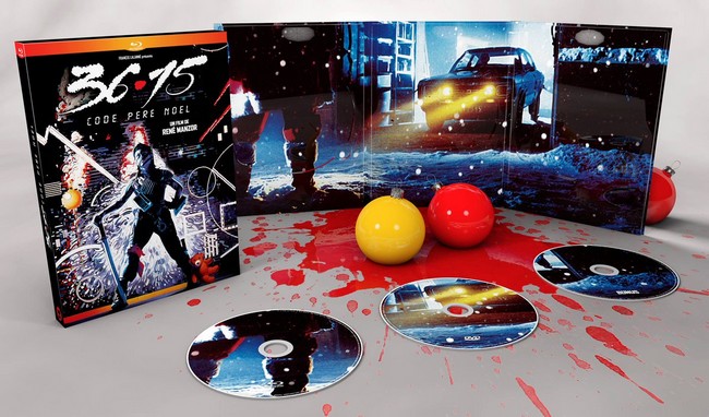 C’était indiscutablement l’un des événements DVD/Blu-Ray les plus attendus de cette fin d’année, tant et si bien que l’éditeur Le Chat Qui Fume avait pris soin de relayer l’événement très en amont, notamment au travers d’une petite présentation de René Manzor lui-même en mars 2017. Sans surprise, et quel que soit le ressenti que l’on puisse avoir sur le film en lui-même, le travail éditorial effectué par l’éditeur est pleinement à la hauteur de nos grandes espérances. Toujours acquis à une sortie flamboyante pour des films méconnus qui n’ont pas eu l’honneur d’une sortie en salles digne de ce nom (on en avait récemment enfoncé le clou là-dessus à propos de la très riche édition Blu-Ray d’Opéra de Dario Argento), Le Chat Qui Fume bichonne 3615 Code Père Noël sur tous les points. D’abord pour une flamboyante restauration 2K, effectuée à partir du négatif original, grâce à laquelle les trente ans d’âge du film semblent tout à coup difficiles à admettre. Master à la netteté absolue (y compris dans ses plans d’ouverture et de clôture), gestion fabuleuse des échelles de plans, respect pointilleux des multiples variations colorimétriques, contrastes maîtrisés sans excès : le sans-faute est encore au rendez-vous, y compris au niveau sonore (on vous recommandera surtout le mixage en DTS-HD 2.0, bien plus efficace pour les scènes de tension). Un verdict qui s’applique aussi bien au Blu-Ray qu’au DVD, les deux galettes étant là encore incluses dans le même packaging – particulièrement beau vu qu’il reproduit la superbe affiche du film.