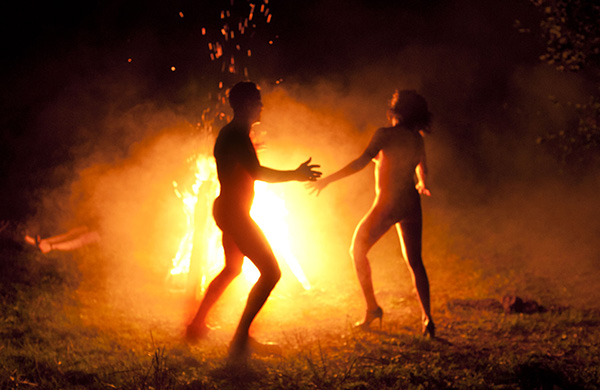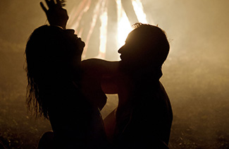 Dans le cas d’Alléluia, c’est à peine si l’on ne sent pas chez le cinéaste le désir de friser la gratuité, de partir en vrille un peu à la manière de ses deux héros (en même temps, ce ne serait alors que pure logique), quitte à faire passer son final abrupt pour un choix artistique assumé. Mais on finit par admettre que Du Welz cherche surtout à jouer avec nous, qu’il jubile à nous déstabiliser. Du coup, son goût pour le grotesque donne au film l’allure d’un curieux trip où toute pièce ajoutée finit par prendre sens, qu’il s’agisse d’une chanson romantique de Gloria avant un bon gros découpage de cadavre à la scie (fou rire assuré avec un sale goût au fond de la gorge !), de quelques incongrues invocations chamaniques de Michel pour illuminer la destinée du couple (« J’invoque la présence des élémentaux… »), de parenthèses barrées où le couple entérine sa fusion dévorante (danse vaudou au coin du feu, mariage improvisé dans une grange, etc…) ou d’une idée gonflée qui intègre la bouffonnerie de l’intrigue sur le terrain cinéphile (African Queen y est cité, avec son Bogart qui hurle de rire et imite un hippopotame).