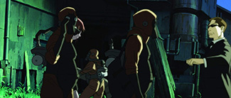 Du Philip Marlowe cyberpunk, animé et japonais, ça vous tente ? Vous auriez tort de faire la fine bouche… Surtout quand le réalisateur de la chose se nomme Shinichiro Watanabe, à savoir l’auteur d’un Cowboy Bebop (d’abord la série animée, ensuite le long-métrage de cinéma) qui puisait déjà énormément dans le cinéma américain et la culture bebop (faites un petit tour sur Wikipédia si vous ne connaissez pas…). Ici, après avoir s’être contenté d’illustrer un scénario rédigé par les Wachowski sur L’Histoire de Kid, Watanabe retourne à ses premiers amours en lorgnant du côté d’un autre genre codifié, en l’occurrence le film noir américain. Un genre dont il concentre ici tous les codes les plus matriciels (rires) : une ouverture sur un héros ayant perdu le contrôle de son destin et arrivé au bout de son parcours (tout commence par la fin), le fétichisme du trench-coat et de la cigarette, la voix off réflexive et introspective mettant en avant tant de paranoïa et de dilemmes moraux, la présence d’une figure animale apaisante (ici un chat), une enquête tortueuse et inachevée autour d’un individu sans visage (qui est ce mystérieux hacker du nom de Trinity ?), des agents de la Matrice en guise de gardiens d’une vérité laissée invisible et indicible par le hors-champ, et surtout Trinity dans le rôle de la femme fatale précipitant par ses actes la chute du héros… Presque Le Grand Sommeil revu et corrigé à la sauce cyberpunk, mixé à des influences sonores très jazzy qui font naître une atmosphère de plus en plus mélancolique, gorgé de fétiches matrixiens que Watanabe réutilise à des fins purement narratives (on y retrouve une version réduite de l’extracteur de mouchards du premier film) et enjolivé dans une superbe animation noir et blanc qui met autant en avant le grain de la pellicule que le caractère très rétro de la production design. Tout ceci n’en fait certes pas la pièce maîtresse de cette anthologie, mais une réussite malgré tout éblouissante qui met en avant la grande aisance de l’univers SF de Matrix à se voir revisité par les codes d’un genre antagoniste.