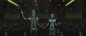 L’univers de Matrix fonctionne sur une idée simple : une entrée et plusieurs sorties. Plusieurs réponses pour chaque question. Mais quand il s’agit de revenir aux origines de l’univers visité, la réponse doit s’imposer, claire et unique. Le gros morceau d’Animatrix – une intrigue développée sur deux segments – a donc pour ambition de répondre à une question simple : comment le ver s’est-il retrouvé dans la pomme ? On retrouve souvent cette image-là dans La Seconde Renaissance, hydre à deux têtes qui fouille les archives de Zion à la recherche des origines de la Matrice. Une voix off nous accompagne ici – celle d’un « instructeur » aux formes féminines et au look bouddhiste très affirmé – mais les images en disent mille fois plus qu’elle pour faire toute la lumière sur la fameuse guerre entre les humains et les machines. Tout n’est ici que pure mise en scène dans cette intrigue archétypale, censée englober une centaine d’années, où une humanité en représentation finit peu à peu par rendre les armes, vaincue par les machines – une création modelée sur son image. Le jeune Mahiro Maeda, petit génie de l’animation 3D ayant déjà roulé sa bosse dans la SF destructrice avec la série Blue Submarine N°6, procède ici en deux étapes : d’abord un condensé de la ségrégation robotique qui alla de la révolte d’un robot (ayant tué son maître par réflexe de survie) jusqu’au rejet d’entrée de la nation des machines au conseil de l’ONU, ensuite une vision extrême du soulèvement des machines réduites en esclavage, avec l’avènement de la Matrice en guise de climax. On voit d’ici l’ambition du bonhomme : combler les trous creusés par le premier Matrix (que s’est-il passé pour que « l’humanité en vienne à assombrir le ciel », comme l’avait suggéré Morpheus ?), condenser en moins de vingt minutes toute la genèse d’un futur dystopique en diable, et, ni plus ni moins, inventer l’Histoire.