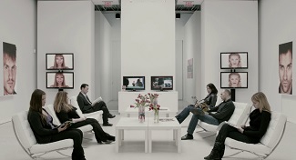 Autre détail à relever : sous un certain angle, Syd rappelle aussi bien le James Woods de Vidéodrome (un néo-laborantin manipulé et physiquement métamorphosé à force de jouer les pirates) que le Robert Pattinson de Cosmopolis (un rejeton de l’hyper-capitalisme dont le costume souillé et dénaturé symbolise la chute sociale). Or, ces deux figures-là, on se contentait d’observer leur déchéance, de mettre celle-ci en perspective afin d’en extraire une réflexion pertinente sur le devenir technologique du monde. Pas de ça chez Brandon Cronenberg qui, bien plus direct et explicite que son papounet, nous invite à épouser la déchéance physique et psychique de Syd. Antiviral est ainsi tout sauf un film agréable à voir. Il se fait même toujours plus inconfortable à mesure que sa narration joue sur l’arythmie, le ralentissement de son énergie interne, la fragilité du corps de son anti-héros omniprésent dans chaque plan. L’allégorie futuriste aura tôt fait de lorgner vers le thriller parano, très précisément quand surgit l’élément déclencheur du récit. Une fois que le nouveau virus qu’il s’est injecté fait disjoncter sa machine extractrice, Syd devient autant un pion manipulé qu’un insecte difforme et convulsif, ballotté d’un état à l’autre tel un corps manipulé qui se verrait passé au microscope à chaque nouveau stade de dégradation (grande scène de la « chambre des vérités »). Et de ce fait, la dépendance organique en action fait de chaque scène une machine à générer de l’horreur graphique, dans un alliage de gore arty qui tâche et de bande-son électro-dark qui fait bouillir les tripes. Même les décors eux-mêmes, signes de l’identité première du film tout entier, subissent cette métamorphose : leur blancheur immaculée, d’abord marquée par un goût de l’épure et des cadres géométriques quasi kubrickiens, se laisse peu à peu teinter de noirceur, voire d’un rouge profond. En somme, tandis que le rouge organique tâche le blanc technologique, un corps devient toujours plus blanc à mesure qu’il se vide de son liquide rouge. Ainsi va le projet viral de Brandon Cronenberg, destiné à relier viscéralement le film lui-même à son cobaye (héros/spectateur) : tels des vases communicants, les vibrations et les soubresauts de l’un deviennent ceux de l’autre.