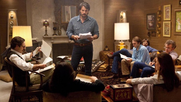S’inscrivant dans un premier temps sous la forme d’une fiction immersive à la Munich, où la mise en place d’une forte tension politique se mêle à une reconstitution historique d’une rare précision, Argo dérive peu à peu vers la satire politique lorsque son argument principal se déploie tel un éventail : en effet, pour faire évader les six diplomates américains, un jeune agent de la CIA spécialisé dans les exfiltrations à haut risque (Ben Affleck) décide de mettre au point une opération secrète visant à les faire passer pour une équipe de tournage venue faire des repérages en Iran pour un film de science-fiction intitulé Argo. Un titre dont la signification ne sera d’ailleurs jamais évoquée (si ce n’est sous l’angle d’une blague graveleuse déclinée en leitmotiv), et surtout, un film qui sera destiné à n’exister que sous forme de projet, préparé dans ses moindres détails avec la collaboration active d’un mogul hollywoodien (Alan Arkin) et du maquilleur de La planète des singes (John Goodman). Trop énorme pour être vrai ? Et pourtant… Un tel sujet fourmillait de promesses, ne serait-ce que pour aborder la mise en parallèle du bidonnage qui rapproche la politique du cinéma, et aussi pour illustrer à quel point l’imaginaire reste un des rares outils capables d’interagir sur la réalité afin de changer le cours des choses. L’excellente surprise, c’est que Ben Affleck, maître de son sujet comme de sa mise en scène, aura su aborder les deux points avec le même souci du détail, et ce au travers d’une mise en scène complexe qui se fait constamment vecteur de sens.