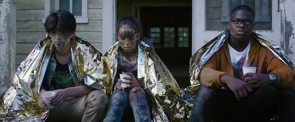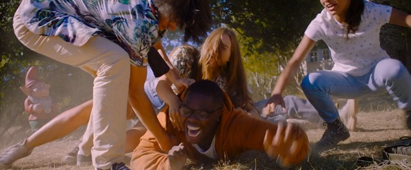 Résumer tout ce qui cloche dans le film incite, dans un premier temps, à ne pas imputer toute la responsabilité du carnage au réalisateur suisse Barthélémy Grossmann. Remarqué en 2007 avec un premier film fauché mais armé d’un vrai désir de cinéma (13m²), le bonhomme fait ici montre d’une maîtrise technique pas désagréable : cadres léchés, éclairages contrastés et découpage solide confèrent à Arthur, malédiction un bel écrin d’ordre purement visuel. Mais impossible pour lui de se dépêtrer de l’aberration scénaristique qu’il doit mettre en scène. Premier problème, et pas des moindres : il est juste totalement impossible de croire à ce néo-ersatz du Club des Cinq. Sans lien avec la réalité, dénués de tout marqueur d’ordre social et visiblement livrés à eux-mêmes, ces ados paraissent aussi propres sur eux que les héros javellisés d’une sitcom AB. Pudeur massive dans les émois sexuels (ça se bisoute à peine sous la tente) et niaiserie surlignée dans les rapports sociaux (ça jubile bêtement comme lors d’une boum trop arrosée au Fanta Citron) les bornent à incarner au premier degré des clichés à la date de péremption dépassée depuis au moins trois décennies. En vrac : le puceau candide est érigé en tête pensante, la « princesse » à emballer (jouée par la propre fille de Besson !) surgit coiffée comme Leeloo, l’intello de la bande a forcément des lunettes, le black banlieusard enfile les blagues pas drôles autant que les fautes de français, la peureuse de service va forcément se confronter à sa pire peur (et en mourir de façon crétine !), les deux potes blonds et musclés font un bain de soleil crypto-gay, le duo d’amoureux s’en tient au sourire Colgate comme seule indication de jeu, etc… Entendre le réalisateur parler des Goonies ou de la bande soudée de Ça en guise de repères référentiels est de l’ordre du contresens. Sans parler du plus problématique : ces ados déjà majeurs mais pourtant encore coincés dans un imaginaire étriqué pour marmots du tiers de leur âge mettent ici en exergue la faiblesse d’une démarche qui semble confondre la préservation d’une âme d’enfant avec le refus de quitter sa bulle protectrice afin d’affronter le vrai monde.