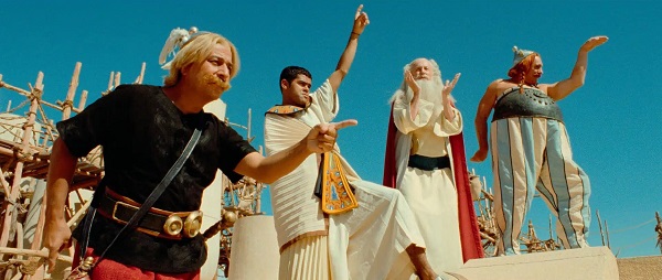 On peut se dire avec le recul qu’adapter l’un des albums les plus exotix – mais aussi l’un des plus surestimés – de la BD Astérix était une bonne stratégie. Il suffit de se souvenir de ce que sa transposition sous forme de film d’animation en 1968 avait su apporter au matériau d’origine : derrière le décalque littéral des dialogues de René Goscinny et des graphismes d’Albert Uderzo se nichait surtout une folie visuelle, pour ne pas dire un certain art du surréalisme, qui faisait figure d’apport on ne peut plus bénéfix – comment oublier la chanson désopilante du gâteau à l’arsenix, la danse du lion de Cléopâtre et le songe gastronomico-zarbi d’Obélix ? Sympathix en soi, ce premier essai manquait malgré tout d’une vraie empreinte singulière par-delà l’extrême fidélité au support BD. C’est la raison pour laquelle on ne pige toujours pas en quoi le vieux druide Uderzo ait pu se sentir gêné de voir l’acteur-réalisateur de Didier se réapproprier trop personnellement son œuvre. D’abord parce que le respect et la fidélité ne sont pas ici des mots lâchés en l’air (la révérence envers les dialogues et les cadres de la BD est ici imparable), ensuite parce que l’humour de Chabat, plus que jamais adepte du combo impro/happening servi par des experts de la private joke de télé cryptée, permet précisément de combler les « trous » du matériau de base. La spécificité du support BD ayant toujours reposé sur l’entretien d’une information hors champ via ce qui se passe entre deux cases, la meilleure façon de l’adapter sur grand écran n’a jamais consisté à autre chose que laisser la traduction de cet entre-deux entre les mains d’un cinéaste inspiré, avec sa propre fantaisie et ses propres audaces en guise de potion magix. Nul doute que ce cher Goscinny, à qui l’on doit très clairement tout le génie du dialogue à tiroirs de l’univers astérixien, aurait hurlé de joie d’avoir trouvé en Chabat une sorte de fils spirituel. Cette philosophie du gag qui vise et ratisse large, ce jeu de l’aventure antix mais pas toc qui puise à la source du décalage tous azimuts, cet usage jubilatoire des anachronismes et des clins d’œil personnalisés : bref, tout ce qui forge l’âge d’or des Nuls en particulier et du fameux « esprit Canal+ » en général ne constitue-t-il pas le plus bel hommage qui soit à sa création légendaire ?