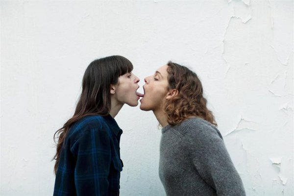 En bas d’un immeuble, deux filles se galochent maladroitement. On voit leurs langues tirées à l’extrême se tourner autour tandis qu’elles se dandinent, visiblement mal à l’aise, ayant presque l’air de deux grosses oies ridicules. En fait, Bella donne à Marina une leçon de roulage de patin, avec commentaires ultra-détaillés à la clé. La première est ultra-expérimentée et multiplie les aventures sans lendemain avec des hommes de tous âges qu’elle rencontre la plupart du temps dans le bar où elle sert, la seconde est révulsée par les rites de la sexualité, ces baisers baveux et ce sexe masculin qui l’effraie. C’est le pré-générique du film et déjà le ton est annoncé : Marina parlera beaucoup d’amour et de sexe, souvent avec effroi mais avec, dans le fond, une fascination certaine, et tournera autour des hommes, ces bêtes étranges qu’elle observe presque comme le zoologue David Attenborough approche les gorilles dans les documentaires animaliers qu’elle regarde souvent à la télévision. Au début du film, seul son père a droit à son affection. Comme il est gravement malade, elle va le voir régulièrement à l’hôpital et se confie à lui. Dans un de ces dialogues étonnants dont le film fourmille, elle lui avoue l’imaginer souvent nu, mais sans fantasme aucun et – pour cause – sans pénis ! Comme son paternel est voué à disparaître bientôt et qu’un client qu’elle conduit chaque jour de son lieu de travail à sa résidence (elle est chauffeuse de taxi) lui tourne autour, Marina est pour ainsi dire cernée par Eros et Thanatos.