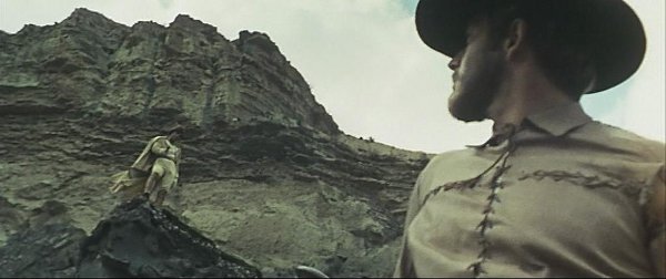 Ironiquement, le film perd de sa force lorsqu’il tente de s’écarter de cette simplicité. Si Avec Django… a acquis une certaine réputation, c’est pour le caractère fantastique que prend son intrigue. Cela est un peu exagéré même si cet aspect est bel et bien présent. Django découvrira que l’un de ses amis n’est en fait pas mort et est celui qui l’a trahi. Incarné avec extravagance par Claudio Camaso (nul autre que le frère de Gian Maria Volonte), ce vil personnage assume sa mort civile en se terrant dans une grotte tel un cadavre dans sa tombe. Le côté « traque d’un mort » n’est pas forcément très neuf mais Margheriti lui donne un certain poids par le décor de la dite grotte où se déroulera le final. Celui-ci présente en effet un jeu de composition et de couleurs baroques des plus surprenants pour un western. L’ambiance devient résolument étrange même si le script ne l’exploite pas aussi bien que la caméra.