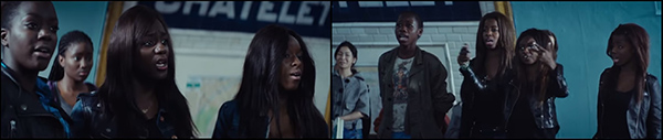 C’est dans la violence symbolique des rapports aux différents groupes et institutions que Marieme devra trouver sa place et, en cela, la rencontre avec les trois autres filles qui constitueront son groupe représente un compromis relativement bienvenu pour satisfaire le présent et relayer le futur à demain. C’est par ce groupe que naît une logique d’affrontement latent qui, d’un regard aux apparences provocatrices, glisse vers la joute verbale, comme en témoigne cette bataille des fiertés de part et d’autre de la station de métro de Chatelet, filmée dans un procédé en champ/contre-champ quasi symétrique qui n’oppose pas tant ces deux groupes qu’il les ramène à leurs similitudes : une course pour l’honneur du groupe et la quête du prestige individuel à travers le maintien et la défense de sa cohésion et de sa solidarité face à l’autre. De la même manière, les combats en duel orchestrent une double dynamique ; celle de l’individu qui se bat en son nom propre ou celui du groupe spécifique auquel il se rattache, et celle de l’ensemble de la collectivité rassemblée autour de « l’événement », avide de ce spectacle à travers lequel l’honneur des combattantes est en jeu. Céline Sciamma illustre ainsi la mentalité qui anime la jeunesse en cours de construction dans un milieu qui les livre à eux-mêmes, dans une logique d’aller-retour entre l’individuel et le collectif.