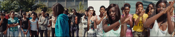La réalisatrice, comme elle le faisait déjà dans Naissance des pieuvres, chorégraphie cette jeunesse en mouvement en reflétant à travers la mise en scène l’importance primordiale de la musique comme outil d’émancipation des corps. Les séquences musicales agissent comme des instants qui suspendent le récit, des parenthèses dans lesquelles les personnages s’épanouissent. Diamonds de Rihanna restera sans aucun doute le plus beau moment pop au cinéma en 2014, immersif pour toute une génération de spectateurs appelée à murmurer simultanément les paroles jusqu’à ce que les voix des personnages éclatent de nouveau dans le dernier refrain. De même, Sciamma montre un revers touchant du cliché « les jeunes de banlieue écoutent la musique à fond dans les transports publics » : une danse pudique dans le métro parisien qui crée une première connivence entre Marieme et ses camarades, puis elle confirme leur symbiose dans une scène forte de chorégraphie sur un morceau de rap de J. Dash. Ces intentions appuient le regard doux et bienveillant d’une réalisatrice impliquée dans son sujet, pudiquement engagée, aux côtés de cette jeunesse « solide et solitaire » qu’elle s’efforce de comprendre et qu’elle nous invite à embrasser.