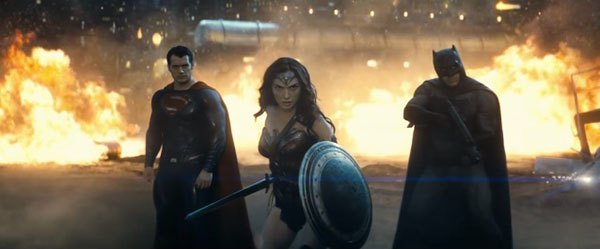 Cependant, c’est la partie annonciatrice de la Justice League qui fait le plus de ravage. L’intégralité de ce qui y touchera est superfétatoire et plombe le film. DC ne fait, dans ces moments, que démontrer son absence totale d’organisation vis-à-vis de son concurrent Marvel. Hors de la qualité de leurs marchandises, la planification de l’univers commun aura été parfaitement pensée. Il s’est construit petit à petit à base de clins d’œil et de divers effets d’annonce. Des promesses parfois (souvent ?) creuses mais qui avaient le mérite d’être brièvement énoncées et suffisamment compréhensibles pour qu’elles ne pénalisent pas le plaisir potentiel du divertissement. À cause du retard accumulé, DC est obligé à jouer la carte de la précipitation et omet toute réserve. Ce qui ne devait être que des easter eggs deviennent des séquences entières insistantes sur leurs importances, tout en demeurant cryptiques pour le néophyte. Quelqu’un n’ayant jamais lu un comic de sa vie comprendra-t-il pourquoi la prédiction finale de Luthor est suivie d’un long plan sur le tableau trônant chez lui ? En conséquence, ces multiples éléments ne sont en aucun cas justifiés au sein de l’histoire (voir le cauchemar apocalyptique de Batman, équivalent d’un court-métrage inséré abruptement à mi-parcours). Wonder Woman résume la problématique de cette voie. Elle en est l’aspect le plus présent et actif. Pourtant, son apport à l’histoire tournant autour de Superman et Batman est totalement nul. Qu’elle soit là ou non, l’intrigue ne changerait pas d’un pouce. Cette introduction s’apparente avant tout à un banc d’essai. Admettons d’ailleurs que Gal Gadot campe l’amazone avec charisme et prestance même si l’inutilité du protagoniste l’empêche d’avoir plus à interpréter. Ce qui est toujours préférable aux autres caméos ressemblant à de miséreux tests vidéos qui n’ont rien à faire dans un produit terminé. Au lieu d’être sujet à de futurs émerveillements, ces brèves apparitions mal préparées suscitent plus de l’embarras envers ces super-héros. Ce qui nous amène aux plus colossaux errements de Batman V Superman.