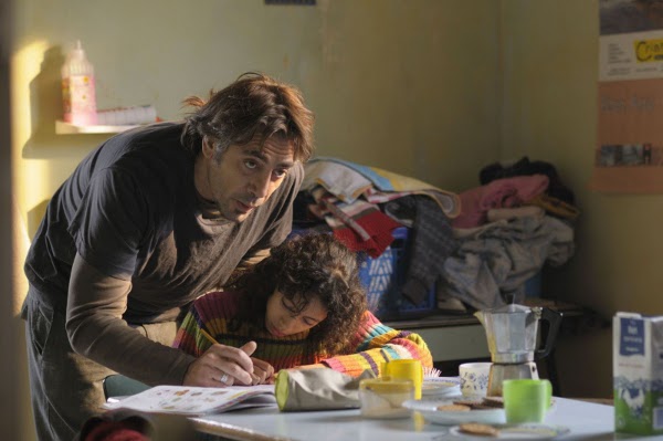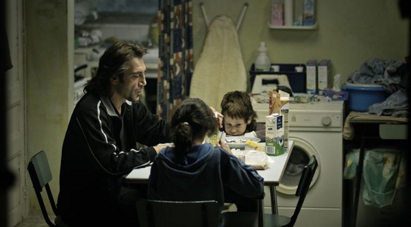 Pour ce qui est de (sur)charger la mule, le cinéaste va ici très loin. Mais comme ça ne lui suffit pas, que fait-il ? Eh bien, il en rajoute encore, puisque, dans le fond, son film ne raconte rien d’autre que ce qu’il cherche à tout prix à illustrer. OK, pour Iñarritu, le monde est une poubelle géante, tout le monde vit dans la misère, tout se prend sans arrêt la fatalité au coin du visage, mais la bonté de chacun peut faire office de porte de sortie temporaire (c’était déjà le sujet en filigrane de ses précédents films). Soit, mais derrière tout ça, où le cinéaste veut en venir ? Nulle part. Très vite, on discerne très nettement sur quels points précis le film va se transformer peu à peu en une croûte abominable à tous points de vue. En effet, pas une seule scène, pas un seul plan ne se déroule sans qu’Iñarritu ne s’attarde sur un détail crado ou pauvre, aidé par une caméra qui bat des records dans la complaisance. Exemple : pour montrer la douleur occasionnée par un cancer de la prostate, il ne lui suffit pas de montrer Javier Bardem pissant du sang dans une cuvette mal nettoyée, il faut en plus rajouter un plan où le héros, qui a un peu pissé sur les bords de la cuvette, essuie les gouttes d’urine sanglante avec un Kleenex usagé. Et je ne vous parle pas de la récupération d’un vieux cercueil dans un cimetière délabré, qui se résume en quatre plans : le décor d’une saleté indescriptible, le chariot élévateur couvert de rouille, le cercueil rongé par les mites, et le cadavre en évidente décomposition. Bref, le monde est une décharge à ciel ouvert, et tout est moche là-dedans. Merci pour l’info.