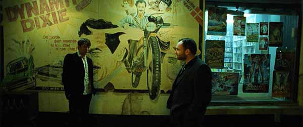 Dès le début, pourtant, chaque plan et chaque intention de montage semblent nous renvoyer à l’hyperréalisme speedé qui irriguait les veines stylistiques du film précédent. La nouveauté s’impose par le biais d’un film apparemment choral, prenant soin d’introduire les cinq protagonistes par un thème musical personnel (une fois de plus, la bande-son est très rock) et un parti pris visuel très précis. Les plans fixes faciaux du générique de Pusher laissent ici la place à des cadrages composites, cadrant d’abord les pieds qui foulent le bitume et ensuite la posture du personnage qui marche. Des déplacements dans des directions opposées mais parallèles, composant une main de destinées avant même que l’intrigue n’ait balancé ses premières cartouches. Et tout à coup, l’énergie redouble de puissance, le temps d’un travelling à la Gaspar Noé qui opère une série de loopings vertigineux dans les couloirs d’un vidéoclub sur fond de la Passion selon St Matthieu de Bach (déjà entendue au début du Casino de Scorsese, film par ailleurs cité dans un dialogue de Bleeder). Que ses recoins soient inondés de lumière rouge – on visite la salle des films pornos – ou globalement diurnes, ce vidéoclub acquiert immédiatement un relief d’allégorie mentale, ce qu’une scène de dialogue avec un client prouve au centuple : tandis que le caissier Lenny (Mads Mikkelsen) énonce la liste des plus grands cinéastes disponibles dans la boutique (sans surprise, Refn en profite pour y caser Kubrick, Hooper et Jodorowsky), le gérant Kitjo (Zlatko Buric) prend sa relève pour évoquer les divers genres de films pornos qui trônent dans la pièce rouge (visiblement, le client n’est intéressé que par ça).