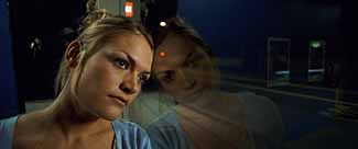 Cette scène a priori anodine et décomplexée est en fait un aiguillage, une mise en parallèle gonflée qui place le 7ème Art sur un terrain glissant. Deux formes de cinéma isolées chacune dans leur coin, mais qui se répondent l’une l’autre en raison d’un énorme point commun, c’est-à-dire la transgression. De là à y voir une analogie avec les deux hémisphères d’un cerveau, il n’y a qu’un pas. Cette sorte de symétrie symbolique va se répercuter d’un bout à l’autre de la mise en scène de Refn, notamment en ce qui concerne les déplacements des personnages : aller-retour incessant d’une vendeuse entre le comptoir et la réserve, délimitation pour isoler deux personnages dans chaque extrémité (voir le travelling sur Lenny et sa copine dans le parc), usage de la courte focale pour obtenir des perspectives plus larges dans ses espaces clos et restreints (rester collé à quelques centimètres de la nuque d’un personnage nous fait ici partager son intériorité et élargit de toutes parts son angle de vision). La caméra est ici un objet mental, assimilable à une sonde qui pratique l’effraction sans tabous et « pénètre » tout ce qu’elle filme. Et dès qu’un personnage embrase une passion (les films pour l’un, les livres pour l’autre), les décors de Bleeder, pour la plupart insalubres et délabrés, semblent se rétrécir pour cause de saturation de cette passion sur les surfaces murales (un studio rempli de VHS et d’affiches de films par-ci, une librairie bondée de gros bouquins par-là). Dehors, le vide du réel. Dedans, le trop-plein de l’irréel.