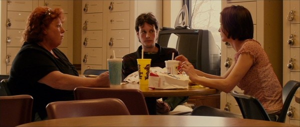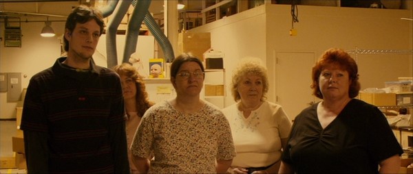 Si l’origine du film se voulait singulière, celle de son scénario l’est déjà moins. Une simple image aura suffi à guider l’écriture de la chose : celle d’une usine où des gens effectueraient un travail manuel et répétitif. Déjà très performante en la matière sur Full Frontal, la scénariste Coleman Hough s’empressa alors de baser l’écriture d’un récit à partir d’un lieu ciblé (Parkersberg, petite ville industrielle de l’Ohio) et d’interviews de gens locaux. Trois d’entre eux furent alors sélectionnés : une directrice de restaurant KFC à la retraite (Debbie Doebereiner), un étudiant en informatique qui cumule les petits boulots (Dustin Ashley), une coiffeuse tout juste installée dans les environs (Misty Wilkins). Les trois non-professionnels improvisèrent alors un récit on ne peut plus linéaire, éloigné de ces narrations sophistiquées dont Soderbergh a le secret. Petit résumé : deux amis très proches, la quinquagénaire obèse Martha et le jeune introverti Kyle, ont chacun un parent à charge (elle vit avec son père grabataire, il habite chez sa mère chômeuse) et se tuent au travail dans une usine de poupées en caoutchouc pour un salaire de misère. Leur amitié (leur « bulle » ?) se voit soudain menacée d’éclatement lorsqu’une jeune mère célibataire, Rose, est engagée dans l’usine et développe un intérêt réciproque vis-à-vis de Kyle. Avec un tel postulat de départ et un tel cadre de production, on s’aiguille fissa vers un certain cinéma européen que l’on a apprivoisé depuis un bon moment : Ken Loach et les frères Dardenne pour ce qui est du vivier prolétaire et de la chronique réaliste, Lars Von Trier et Bruno Dumont pour ce qui est de la méthode d’approche et de filmage. On en vient même à dénicher un lien avec le cinéma spiritualiste de Dumont, le temps d’une messe durant laquelle Martha semble atteindre une sorte d’état transcendant – un effet de lumière bleue isole alors son visage dans l’obscurité. Sauf qu’il faut attendre la fin pour saisir la signification réelle de cet effet (il s’agit du moment où untel accède à une vérité secrète ou refoulée le concernant). Et qu’entre-temps, la nature véritable de Bubble aura éclaté plein cadre : faux drame intimiste, mais vrai polar qui cachait bien son jeu.