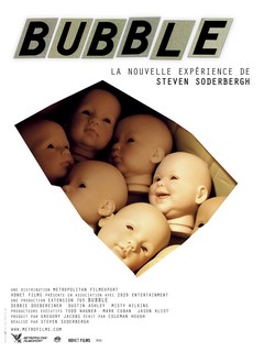 Comme pour Full Frontal, c’est mieux de démarrer par le titre. C’est quoi, cette « bulle » qui donne son nom au film de Steven Soderbergh ? Rien n’est clair là-dessus. Au regard de l’affiche, faut-il y voir une similitude visuelle avec ces têtes rondes de poupées en caoutchouc dont on assiste ici au démoulage dans une petite usine du fin fond de l’Ohio ? Au vu du contexte géographique abordé, est-ce une façon de métaphoriser ce prolétariat anti-glamour et anti-hollywoodien où chacun « vivrait dans sa bulle » ? Ou alors, en voyant ce que le scénario a l’air de sous-entendre, s’agit-il de désigner cette forme légère qui finit toujours par éclater après avoir flotté plus ou moins longtemps ? Choisissez l’hypothèse qui vous arrange le mieux, elles se valent toutes. Ce qui est sûr, c’est que Bubble déroute moins par son intrigue (très simple) que par la motivation de son cinéaste (pas claire du tout au départ). Quand bien même le désir de se ressourcer sur les terres du cinoche indépendant après la quinte flush Ocean’s Twelve rejoint ce que l’on a déjà dit et redit sur ce gars-là (il réalise toujours un film afin de « casser » le précédent), il est en revanche moins facile de déceler ce qui a guidé un tel résultat. Or, c’est là un oubli que l’on fait parfois, et que l’on mettait déjà en exergue à propos de Full Frontal : chez Soderbergh, c’est une idée, et non un sujet, qui dicte un principe de production et de mise en scène. Quelle idée, donc ? Ni plus ni moins qu’un accord de production passé entre le réalisateur et le réseau HDNet. L’idée consistait à tourner six films, avec le même budget (1,6 millions de dollars) et le même impératif : chaque film devait se dérouler dans un endroit peu filmé au cinéma et sortir le même jour sur différents supports (cinéma, télé, VOD, DVD…). Une idée couillue qui suscita des réactions houleuses (Cameron et Shyamalan ne se sont pas gênés), certains n’y voyant qu’un coup marketing suicidaire, d’autres jouant les lanceurs d’alerte pour l’exploitation en salle. Film-cobaye, Bubble n’aura pas rendu l’expérience concluante. Simultanéité des modes d’accès ? Film trop pointu pour viser large ? Difficile à dire. Seule certitude : ce film-là reste une fascinante énigme.