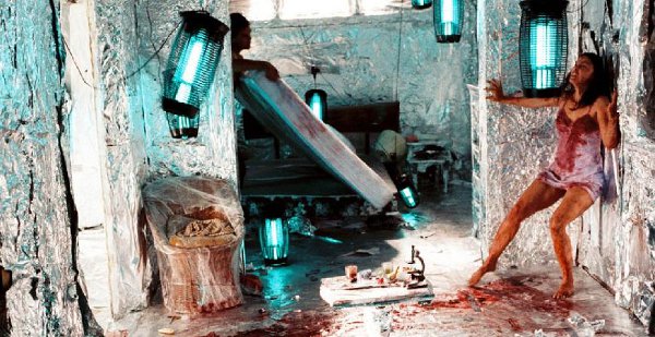 Car, oui, à l’instar de La Mouche de David Cronenberg, Bug a beau utiliser tous les ressorts du cinéma de genre, il n’en reste pas moins avant tout une pure histoire d’amour, où une femme triste plonge dans le délire de l’homme qu’elle aime pour ne plus le lâcher. Jusqu’au stade terminal de cette folie, qui offre déjà un relief plus inquiétant à cette chambre de motel : habitation dégueulasse au départ, cocon rassurant suite à l’installation de Peter, elle vire progressivement à l’espace mental le plus abstrait, où les murs sont entièrement couverts d’aluminium et où le décor prend l’allure d’un sarcophage verrouillé. Agnes et Peter sont alors à l’image de ce qu’ils épient : des insectes grouillants dans leur bulle, et condamnés à ne jamais pouvoir revenir en arrière. L’aberration de leur comportement s’accroit alors jusqu’à cet instant génial où Agnes célèbre sa déviance psychologique en hurlant « I’m the super mother bug !!! ». Même l’apparition finale d’un inquiétant médecin ne servira à rien, puisque son exécution hardcore sera aussi rapide qu’il semblait avoir donné un indice précis à Agnes sur le comportement de Peter. Ne reste alors plus que la mort, ultime délivrance de la contagion virale, mentale et amoureuse qui s’opère ici : de l’essence partout, un ultime baiser d’adieu, une allumette qui craque, et hop, tout s’embrase. Le virus a disparu, si tant est qu’il ait réellement existé. Le complot, en revanche, reste une vue de l’esprit.