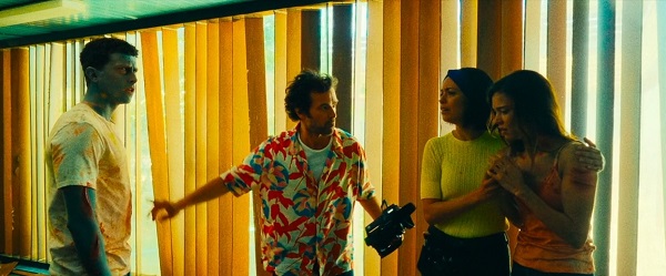 Bon nombre de cinéphiles étaient déjà au courant : une telle idée n’était pas le fait de Michel Hazanavicius. Que le bonhomme ait longtemps caressé l’idée de filmer un tournage de film qui vire au bazar le plus complet le destinait d’entrée à se saisir de ce projet de remake de Ne coupez pas !, petite série Z japonaise over-hype et franchement nase réalisée par Shin’ichirō Ueda. Mais que pouvait-il y avoir à extraire de neuf de ce petit film de potes, tourné en 2017 pour peanuts et initialement destiné à une carrière éclair dans une petite salle d’art et essai de Tokyo avant qu’un bouche-à-oreille insensé ne lui offre le succès local et le statut culte sur un plateau d’argent ? Très clairement, on restait d’autant plus perplexe que le résultat, au-delà d’un humour décalé à peu près autant aux fraises que la finition, semblait n’avoir pour seule velléité que de flatter un état d’esprit typique de la pratique du cinéma de genre. Lequel ? Tout bêtement celui de Sam Raimi et de Peter Jackson à l’époque où ils s’efforçaient de donner respectivement vie à Evil Dead et Bad Taste. Soit de jeunes passionnés animés par une passion commune et une folle envie de créer en s’amusant, qui s’en allaient donner naissance à des péloches horrifiques à teneur potache, certes un peu branques sur les bords et souvent pas du tout maîtrisées d’un point de vue technique, mais au travers desquelles une sincérité créative se mettait alors en place, signant de facto les prémices d’un style et la naissance d’un metteur en scène.