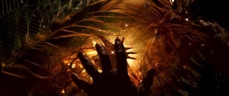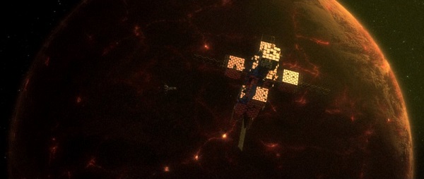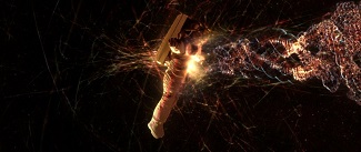 Au fond, dire d’une telle intrigue qu’elle est squelettique n’a rien de péjoratif : il s’agit bel et bien d’un squelette narratif sur lequel le spectateur est invité (s’il le veut) à greffer ses propres organes réflexifs et sensitifs. Divisé très logiquement en trois « cercles de l’Enfer », le scénario met d’entrée cartes sur table en lorgnant clairement du côté des contes et des légendes, avec l’envoûtante voix off de Simona Maicanescu qui lâche un « Il était une fois… » en guise de pacte inaugural passé avec le spectateur. Accepter la magie et la naïveté, se nourrir du lait de la mythologie au sens large, s’imprégner d’un récit symbolique pour en extraire ses propres réponses : voilà bien le mantra central qui drive tout le projet de Caro, ce dernier ayant bien compris que la force du genre SF vise à utiliser la technologie comme une grille de (re)lecture des contes et de la mythologie. Symboliquement, tout se résume ici à l’histoire d’un chevalier qui affronte un dragon – c’est le sujet même de la légende de Saint Georges, infusée dans les croyances orientales et occidentales depuis des siècles. Sauf qu’à bien y regarder de plus près, le « chevalier » en question, à savoir cet être/ange purificateur qui ne dit pas un mot (hormis un très vague « La lumière… la lumière… »), est une surface opaque, pour ne pas dire carrément translucide (le définir comme un Jésus new age n’est qu’une interprétation parmi tant d’autres), tandis que le fameux « dragon » ne cesse de changer de forme (planète Dante recouverte du feu primordial, pieuvres mystico-lumineuses figurant le Mal, manipulation et/ou violence envers untel ou untel dans la station, etc…). Un signe qui, à lui seul, invite à se montrer méfiant sur la grille de lecture à adopter vis-à-vis du film.