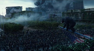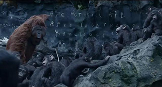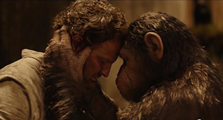 Autant de détails qui mettent du baume au cœur alors que la mise en scène dans son ensemble ne semble guère respirer. On pourra parler de formatage vis-à-vis d’un découpage n’allant jamais au bout de ses capacités et suivant sagement les recommandations fixées par le scénario. Là où le découpage doit ouvrir des verrous de compréhension supplémentaire, il les laisse ici clos. L’affrontement souffre quelque peu de ne fonctionner que sous l’angle de l’efficacité et de ne pouvoir passer plus de chose en sous-main. Prenons l’une des meilleures idées du film consistant à minimiser les dialogues entre les singes (encore une parfaite manière de transmettre le sentiment d’assister à la naissance d’une nouvelle ère). Lorsqu’il s’agit de savoir s’ils doivent s’exprimer par le langage des signes ou la parole, la solution est trop souvent recherchée sous l’angle du sensationnalisme. Qu’est-ce qui aura le plus d’impact immédiat chez le spectateur ? Qu’est-ce qui surlignera le mieux l’importance de l’information délivrée ? Le choix se repose sur des arguments basiques alors que la transition entre les deux méthodes pouvait devenir le moyen de signifier comment les singes évoluent jusqu’à reproduire les erreurs de leurs prédécesseurs.