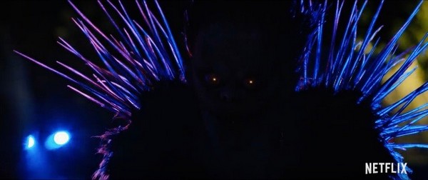 Ryûk est en ce sens un personnage insistant, poussant plus Light à utiliser le cahier sans se préoccuper de ses innombrables règles. On pourra accorder à Wingard une illustration plus classique mais pas forcément inadéquate du dieu de la mort. Les dessins de Takeshi Obata le dévoilait sans détour, le montrant dans son entier se déplacer nonchalamment au côté de Light. On était alors enclin à oublier la nature du protagoniste et à ne plus le voir que sous l’angle d’un spectateur amusé. Ce qui accentuait le cruel rappel à l’ordre lors du climax. A l’inverse, Wingard lui octroie perpétuellement une dimension horrifique. Il le filme essentiellement dans l’ombre et partiellement, ne nous offrant souvent que son inquiétante silhouette et la voix frissonnante du génial Willem Dafoe. Cet éloignement de la créature du manga n’est pas désagréable en matière d’ambiance. Mais il est regrettable que cet accent sur le démoniaque se mette à sonner comme une excuse au comportement de Light.