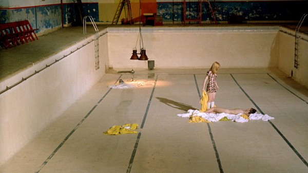 Et ce qui pouvait ressembler à une trajectoire initiatique (motif rectiligne) avec les passages successifs dans différentes cabines des bains se recourbera en une spirale dès lors que, dans les rues du « Swinging London », Mike tourne en rond, entre l’entrée d’une discothèque où il cherche Susan et sa dernière conquête qu’il jalouse, la roulotte d’un vendeur auquel il achète des hot-dogs en attendant que le couple sorte et le couloir d’une boîte de strip-tease où il se cache du patron auquel il a volé la silhouette en carton destinée à rameuter les clients et qui n’est autre que… celle de Susan ! La manifestation des pulsions du héros n’est plus seulement visuelle (les murs des bains qu’un employé repeint en rouge vif à l’arrière-plan sans que Susan y prête attention), elle contamine le scénario qui se dérègle en une succession d’absurdités cocasses puis carrément tragiques que ne viennent parfois raccorder entre elles que quelques courtes compositions instrumentales de Cat Stevens. Avec une fin en apogée qui exalte par ses délires la frénésie du comportement des personnages en même temps qu’elle en signe les limites terribles : pas d’issue pour une passion trop subite et trop viscérale. Tout se dérobe sous les pieds de Mike, jusqu’à la « deep end », l’extrémité profonde du titre, qui n’est pas celle qu’il croyait… Explosions de couleurs primaires et tournoiements de la caméra, étreintes et déchirements des corps nus, vide de la piscine et montée angoissante du niveau de l’eau : ce final est un festival pour les sens et les sensations. Il signe à la fois la spontanéité inhérente à un tournage qui fut rapide, ouvert aux improvisations, aux idées lancées par chacun et la maîtrise d’un orchestrateur dont on espère que d’autres preuves de son talent seront vite données à voir dans d’aussi belles copies et au plus grand nombre. Il faut déjà se ruer sur ce Deep End, premier cadeau d’une série que l’on espère longue…