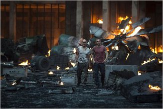 En alignant les choix ineptes avec une réjouissance honteuse, John Moore ferait presque croire que Len Wiseman a brillamment su se réapproprier la franchise. En apparence, les deux épisodes partent pourtant sur des bases similaires en choisissant de sacrifier le principe d’unité de lieu de temps (Belle Journée Pour Mourir tente quand même de concentrer le gros de son action sur 24 heures). Rien d’étonnant jusque là comme on l’a expliqué plus haut. Ce qui l’est plus, c’est la manière dont le personnage de John McClane semble complètement déconnecté de l’intrigue. Pendant tout le premier acte, le personnage est pratiquement hors du film. Si on rappelle qu’il est le seul élément censé donner au long-métrage l’identité Die Hard, l’arnaque n’est pas loin. On en arrive presque à croire qu’il s’agit d’un montage 2 en 1 à la Godfrey Ho. Les scènes avec Willis viendraient d’une bobine égarée du quatrième opus et seront vaguement incorporées dans une autre production avec de nouvelles voix postsynchronisées pour faire le lien (ça expliquerait l’absence de conviction que met l’acteur dans l’intégralité de ses punchlines). Bien sûr, l’effet s’estompe lorsque McClane retrouve son fils et qu’ils mènent l’action de concert. Mais une impression demeure : McClane ne sert à rien. Son rejeton semble tellement apte à mener l’intrigue tout seul que papy Willis ressemble à un élément secondaire on ne peut plus dispensable. Evidemment, il y a une excuse héritée du quatrième épisode avec l’idée d’opposer le paternel aux méthodes improvisées avec un fils aux plans méticuleux et calculés. Encore faut-il cela dit en faire une exploitation ludique, ce qui est loin d’être le cas.