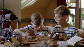 La carrière de Cronenberg étant elle-même aussi évolutive que les créations scientifiques qu’elle met en scène, Faux-semblants se veut très clairement un prolongement de La Mouche. C’est en effet la seconde fois où le cinéaste s’écarte des espaces ouverts, plus ou moins représentatifs d’un échantillon représentatif de la société, au profit d’espaces toujours plus restreints, via un nombre toujours plus réduit de personnages (dont un savant assimilé à un artiste) qui s’adaptent au cadre clos pour amplifier la logique interne et maladive qui les travaille. Même lorsque le récit fait mine de s’ouvrir vers l’extérieur à de rares occasions (des conférences par-ci, des remises de distinction par-là), l’assistance visualisée a tôt fait de réduire l’univers de ses deux protagonistes à celui qui leur est propre, à savoir un corps médical dont on ne s’extrait pour ainsi dire jamais. Les deux décors récurrents du film – l’appartement et la clinique des frères Mantle – entretiennent ainsi des similitudes plastiques et architecturales en lien direct avec la fusion des cadres privés et professionnels pour les deux frères. Tout ce qui est extérieur n’est que satellite, sans impact réel pour eux… mais pas sans impact signifiant pour nous. Et dès l’instant où Elliot et Beverly Mantle apparaissent à l’écran, tout est fait pour prendre acte d’un cadre dessiné et autogéré par leur psyché. Dès la première scène, leur enfance est ainsi décrite par le biais d’une discussion sur le sexe en lien avec la fécondation en milieu aquatique (ils vont même jusqu’à proposer à une jeune voisine de coucher avec eux dans une baignoire à des fins d’étude) et leur look de nerds à lunettes est à peu près aussi inquiétant que cette permanence du débat scientifique qui semble régir leur vie. Si l’on ajoute à cela l’absence de parents à l’écran (ouf, pas d’explication freudienne à deux balles !), difficile de ne pas anticiper la dimension d’espace mental que va acquérir la suite du scénario.