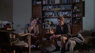 Rien qu’avec l’installation d’un lien fort entre deux jumeaux (incarnés par le même acteur) et son effritement via la superposition des identités, Cronenberg pouvait s’assurer le minimum syndical en captant l’ambiguïté de l’esprit par l’expression corporelle (ou l’inverse). Son génie aura été de ne pas s’en contenter. Aborder le thème de la gémellité, propre à la notion de similitude, induit d’aborder en premier lieu la notion de fusion. Les frères Mantle n’y sont pas représentés comme de simples entités aux points de vue opposés, mais quasiment comme les deux faces d’une même personne, l’une étant aussi bien le miroir physique que la projection psychique de l’autre. Là où le cinéaste installe un élément de menace pour cet équilibre, c’est dans la fragilité existentielle de Beverly, laquelle contraste très finement avec la décontraction cynique d’Elliot. Le tour de force de Cronenberg est donc d’avoir réussi à exprimer la fusion des deux frères en la confrontant à des éléments qui entretiennent la confusion sur cette fusion. En témoigne une scène tout sauf anodine où Elliot, en congé pour un séminaire sans la présence de son frère, reçoit deux jumelles prostituées – jouées par les sœurs Jill et Jacqueline Hennessy – dans sa chambre d’hôtel. Pour pouvoir les différencier, il leur explique les règles : l’une va l’appeler Bev, l’autre va l’appeler Elly (les deux frères s’appellent toujours par leurs diminutifs qui, si on les associe, forment presque le prénom « Beverly » !). C’est l’éternel schéma sophiste consistant à définir une entité comme étant « deux », ou tout du moins deux entités qui s’additionnent pour n’en former qu’une. Mais c’est aussi un acte pathologique à la limite de la schizophrénie, jouant sur la gémellité en tant que relais du narcissisme, voire d’une fascination à la lisière de l’homoérotisme. Ce qui éclatera ensuite de façon plus tangible dans cette scène de danse à trois où, par le biais d’une connaissance intime placée entre les deux frères, surgit alors le désir d’Elliot de fusionner de façon sensorielle avec Beverly – l’évanouissement de ce dernier et la réanimation par bouche-à-bouche se passent de commentaires. Être deux, c’est être l’un « contre » l’autre en tant que soi-même.