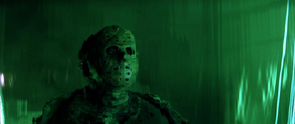 Au premier plan, on peut se contenter d’assister à la symbiose conflictuelle entre deux figures du Mal qui se fondent l’une dans l’autre avant de s’entretuer. Au second plan, on visualise surtout deux corps à forte teneur mythologique, où chacun d’imposer à son ami/ennemi sa propre éthique du meurtre, et ce jusqu’au moment où le bouchon de la concurrence finit fatalement par sauter. La perversité de Freddy, ordonnée depuis toujours par un goût du morphing too much (face à un fumeur de marijuana, le voilà en limace défoncée qui fume le narguilé !), atteint ici son plus haut stade d’expressivité lorsque le film bascule de plein fouet dans l’onirique. D’abord en revisitant la traditionnelle poursuite mentale entre Freddy et ses victimes dans la mythique chaufferie des Griffes de la nuit, ensuite en intégrant le « paysage mental » de Jason (un vaste marécage de boue et de têtes coupées, hanté par la mort et la désolation). Dans ces moments-là, Ronny Yu se la joue aussi « psy » que le fond discrètement sociologique de son intrigue (d’où la présence de Wes Craven comme « coscénariste » ?), déployant un style ultra-opératique où l’usage des couleurs primaires (du bleu, du rouge, du vert !) sert à merveille ce voyage barré dans différentes strates spatiotemporelles. Jusqu’au duel final, mettant fin au couple maudit formé par ses deux monstres au profit d’un pur combat de catch délirant façon Mothra contre Godzilla. Le degré de brutalité vire alors à l’excès le plus total : victimes de leurs méfaits, Freddy et Jason redeviennent cette fois-ci les jouets de leur propre metteur en scène, lequel prend un plaisir sadique à les voir s’arracher les yeux, se déchirer le foie, s’éclater les reins, se décapiter à coups de machette, etc… Lequel des deux gagnera ? On s’en fout. C’est le jeu qui compte, pas son issue.