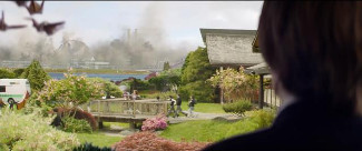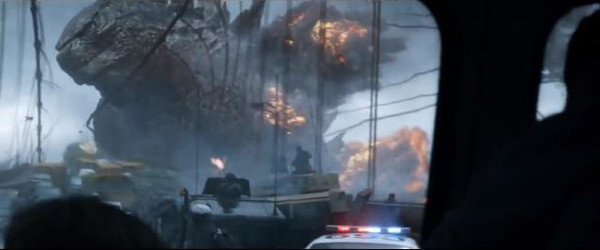 Pourtant, Edwards ne brandit pas cette peinture d’une atmosphère apocalyptique comme une ambition masquant son mépris ou méconnaissance du genre. Se revendiquant fan des films de la Toho, il ne rechigne aucunement à satisfaire le cahier des charges en matière d’action. Porté par des effets spéciaux époustouflants, son spectacle respecte profondément les codes du genre et n’appose son identité que par l’orientation de sa mise en scène. Il en va ainsi du design de Godzilla qu’Edwards voulait le plus proche possible du costume original mais avec un rendu graphique d’un niveau photo-réaliste. En ce sens, le film évite le piège du clin d’œil en se référant plus à des mécanismes et principes fondamentaux qu’à de pures références artificielles. La musique d’Alexandre Desplat rejoint cette idée avec un thème principal très proche de l’esprit du thème original mais sans en être un quelconque décalque. Dans ses choix, Edwards fait preuve d’un amour du genre mais un amour qui n’a rien d’aveugle et comprenant les nécessités de faire fonctionner le film par delà le jeu des clins d’œil. En ce sens, le film évite assez miraculeusement les fautes de goût même si il en laissera échapper une monumentale lors d’une scène clef. Il s’agira rien moins que de la première apparition de son personnage-titre. Montré dans toute sa magnificence alors qu’il lâche son fameux cri, le montage propose une transition sur un enfant découvrant devant sa télévision le tant attendu combat. Un « gag » impromptu et d’autant plus incompréhensible qu’il s’agira de l’unique écart du long-métrage en la matière. Le film dévoilera cela dit plus de soucis que cette simple anicroche.
