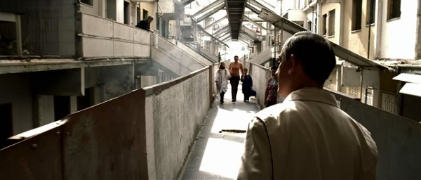 La scène d’ouverture du film, sans aucun rapport avec les cinq autres intrigues, contenait déjà en soi une symbolique propre à la mise en scène de Garrone et aux exactions sournoises de la Camorra : cinq hommes se détendent dans un salon de bronzage, discutent gentiment, se lancent quelques vannes amicales, et voilà que, sans crier gare, deux d’entre eux sortent les flingues et éliminent les trois autres avant de s’enfuir sans se presser, ne laissant derrière eux qu’une poignée de cadavres sanglants. Cette proximité avec une criminalité à double visage produit ici un dérangeant effet de réalité, très éloigné des partis pris lyriques et classiques des classiques du cinéma mafieux (on est sacrément loin du Parrain), que le cinéaste utilise ici comme outil à double tranchant pour mieux révéler la violence et la perversité du milieu camorriste, ce dernier pouvant être facilement source de fantasmes à l’instar de ce que les jeunes Marco et Piselli s’imaginent à tort. Mais au bout du compte, le style visuel et narratif de Garrone fait surtout preuve d’un refus de toute dramatisation des faits, un peu comme si la mise en retrait s’imposait d’elle-même en raison du vide total de règles et de codes qui régissent ce monde malade, et la sècheresse graphique et filmique qui se dégage de chaque scène choque bien au-delà de la violence. Comprenons par là que, si Gomorra marque durablement la rétine, c’est autant par sa crudité et son réalisme que par sa volonté de livrer une radioscopie du milieu criminel où les choix de mise en scène en arrivent à bloquer tout jugement, voire toute réaction. Le spectateur est alors dans une situation terrible : figé, tétanisé, sans autre réaction que la peur dès lors que la violence se déchaîne, devenant le témoin immobile d’événements horribles où toute marge de sécurité semble avoir été jetée aux orties, ce qui le fait osciller entre fascination et dégoût. Un peu à l’image du tout premier plan du film, où la vision d’un homme figé dans une cabine de bronzage s’accompagne d’une accentuation progressive de la lumière et du volume sonore. L’image est parlante, même s’il s’agit du seul plan où la question du rapport à l’espace, force maîtresse de la mise en scène de Garrone, ne se pose pas vraiment.