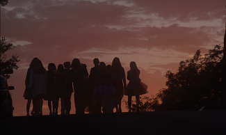 Au fond, tout ce que le teen movie aura pu dégager d’étrangeté onirique, d’innocence perdue et d’angoisses sourdes se retrouve condensé à merveille dans ce tout petit film indépendant, trait d’union multiple reliant à la chaîne tout un panel de cinéastes qui, chacun à leur manière, ont su faire dévier le récit d’apprentissage relatif à cette transition vers l’âge adulte, quitte à le rendre plus éthéré et ambivalent. Les noms prestigieux font ainsi bouillir notre cortex cinéphile : Richard Linklater, Peter Weir, David Lynch, John Hughes, Sofia Coppola, Gregg Araki, Atom Egoyan et même Lucile Hadzihalilovic. On n’exagère pas, tant Ham on Rye est une œuvre qui repose entièrement sur l’idée de réminiscence et de connexion à l’imaginaire – celui que l’on (se) construit et/ou celui que l’on (nous) impose. Le pitch est très simple : ce jour-là, plusieurs adolescents d’une ville de banlieue entament un étrange pèlerinage à travers la ville, chiquement habillés pour ce que leurs parents qualifient, sans explication précise, du « jour le plus important de leur vie ». Remise de diplôme ? Bal de fin d’année ? Le doute s’installe d’autant mieux que le cinéphile rodé au genre aura tôt fait d’envisager par réaction quelque chose de différent. Et à vrai dire, tant de motifs cumulés et décalqués avec une telle insistance ont le chic pour nous tenir sur la défensive. Les vêtements sont ici uniformisés selon le même mode (robes mal fichues pour les filles, costumes trop grands pour les garçons), le male gaze infuse discrètement son diktat (on choisit de porter un sac à main parce que « ça plaira aux mecs »), le trajet en ordre dispersé est marqué autant par des groupes qui se toisent du regard que par d’étranges discussions sur la procréation en tant que but ultime de l’existence. Et parmi ces ados qui transpirent la fibre hipster (on y croise un sosie littéral de Paul Mirabel !), on retient surtout la réticence de la jeune Haley (Haley Bodell), timide, anxieuse et trop sceptique vis-à-vis de ce mystérieux « rite de passage » qui les attend à leur destination et qui paraît déterminer leur avenir. Chaque doute qu’elle exprime ne reçoit que l’incompréhension de ses amies en guise de boomerang (« Tu réfléchis trop », lui répète-t-on).