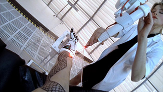 Pour autant, Ilya Naishuller ne fait pas mystère de son intention de transformer Hardcore Henry en rollercoaster total, du genre à nous saucissonner les globes oculaires à répétition. Sa passion évidente pour les FPS (ou « jeu de tir à la première personne ») se décline ici dans un amas de références habilement noyées dans la masse narrative. On peut citer aussi bien une avalanche de scènes d’action méga-violentes qui évoquent chacune un jeu célèbre (de Medal of Honor à Call of Duty en passant par Half-Life et Counter Strike, tout y passe !), mais aussi de très amusants gimmicks dans le design général du film, tel un look de bad guy calqué sur le Dante de Devil May Cry ou des sous-titres qui se superposent lorsque le dialogue devient inaudible. Le réalisateur ne se freine jamais dans ses audaces, quitte à congeler certains éléments de l’intrigue (d’où viennent les pouvoirs télékinésiques du méchant ?) ou à abuser des effets les plus incongrus pour faire évoluer l’intrigue (usage rigolo du split-screen lorsque le héros perd l’un de ses yeux !). Une folie constante qui nous met à genoux, et ce jusqu’au carnage final, monument de sadisme orgiaque à la MadWorld qui passe en revue les mille et une façons de zigouiller son prochain. Certes, qui dit « action en vue subjective » annonce forcément « shaky-cam à gogo », ce qui n’est pas toujours très agréable. Pour autant, cette énergie brute est en raccord absolu avec le but du film : nous épuiser. Du début à la fin, défoncer tout sur son passage sera restée la règle souveraine de cet ovni complètement fou.